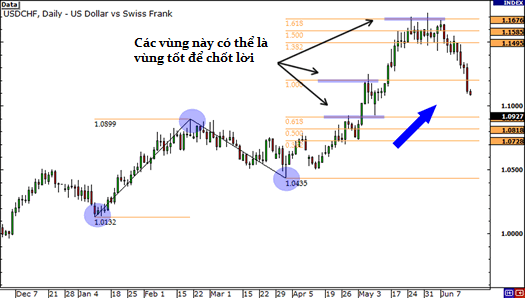Người giao dịch sử dụng Fibonacci mở rộng như là các vùng hỗ trợ và kháng cự để đặt mục tiêu chốt lời.