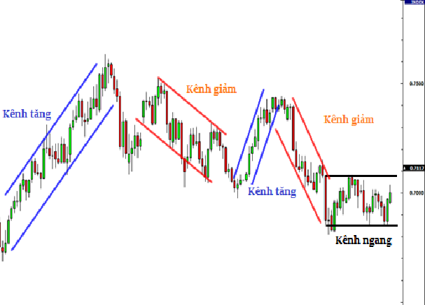 1. Kênh tăng (giá tạo các đỉnh cao mới và đáy cao mới)