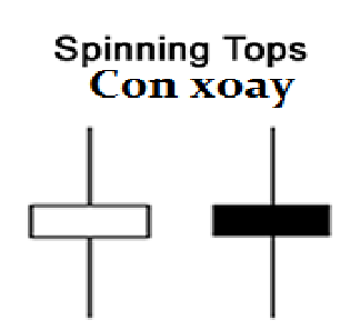 Mô hình nến với bóng trên và bóng dưới dài, thân nến nhỏ thì được gọi là Con xoay – Spinning Tops. Màu của thân nến không quan trọng