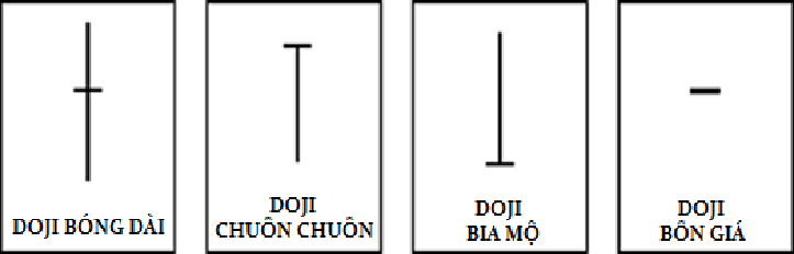 Mô hình nến Doji là mô hình nến mà giá đóng cửa và giá mở cửa bằng nhau hoặc gần bằng nhau, tức là thân nến sẽ rất nhỏ, chỉ như là 1 đường ngang mỏng nếu bạn nhìn trên biểu đồ Mô hình nến Doji thể hiện sự do dự hoặc sự đấu tranh giữa phe mua và phe bán (hơi tương tự như Spinning Tops). Giá di chuyển lên trên và xuống dưới trong suốt phiên giao dịch nhưng lại đóng cửa rất gần so với giá mở cửa Không có bên nào trong phe mua và phe bán có thể nắm quyền kiểm soát và kết quả là hòa nhau, dẫn đến việc thể hiện nến Doji