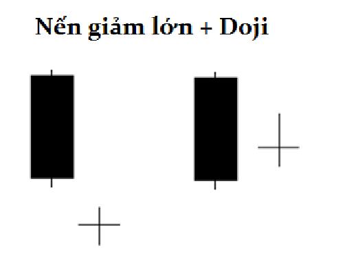 Nếu một cây Doji xuất hiện sau một loạt nến giảm với thân nến dài (kiểu như nến giảm Marubozu) thì dấu hiệu mà doji mang lại có thể là việc phe bán đang đuối sức và yếu dần đi. Để giá tiếp tục giảm, cần phải có nhiều người bán hơn nhưng có vẻ như không còn ai nữa. Phe mua đang nhảy vào và có khả năng sẽ đẩy giá lên