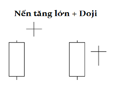 Nếu một cây Doji xuất hiện sau một loạt nến tăng với thân nến dài (kiểu như nến tăng Marubozu) thì dấu hiệu mà doji mang lại có thể là việc phe mua đang đuối sức và yếu dần đi. Để giá tiếp tục tăng, cần phải có nhiều người mua hơn nhưng có vẻ như không còn ai nữa. Phe bán đang nhảy vào và có khả năng sẽ đẩy giá xuống.