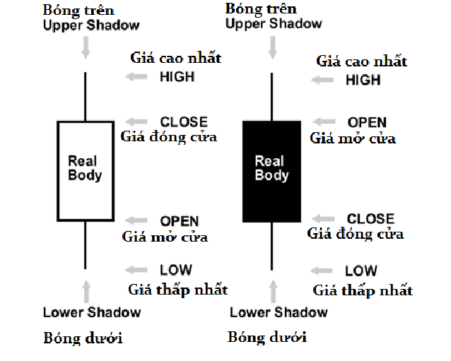 Thân trắng hoặc thân đen thì được gọi là phần “thân nến” (real body hoặc body)